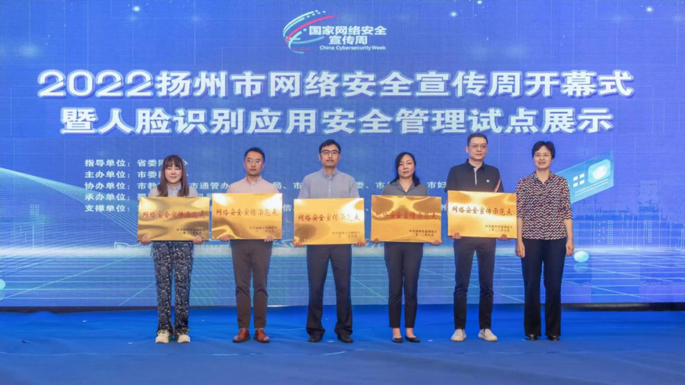 9月6日上午,2022揚州市網(wǎng)絡(luò)安全宣傳周開幕式暨人臉識別應用安全管理試點展示會在揚州市迎賓館順利召開。開幕式上,城控集團公用事業(yè)服務(wù)北區(qū)營業(yè)廳(市民卡鴻福營業(yè)廳)獲得“網(wǎng)絡(luò)安全示范點”授牌。