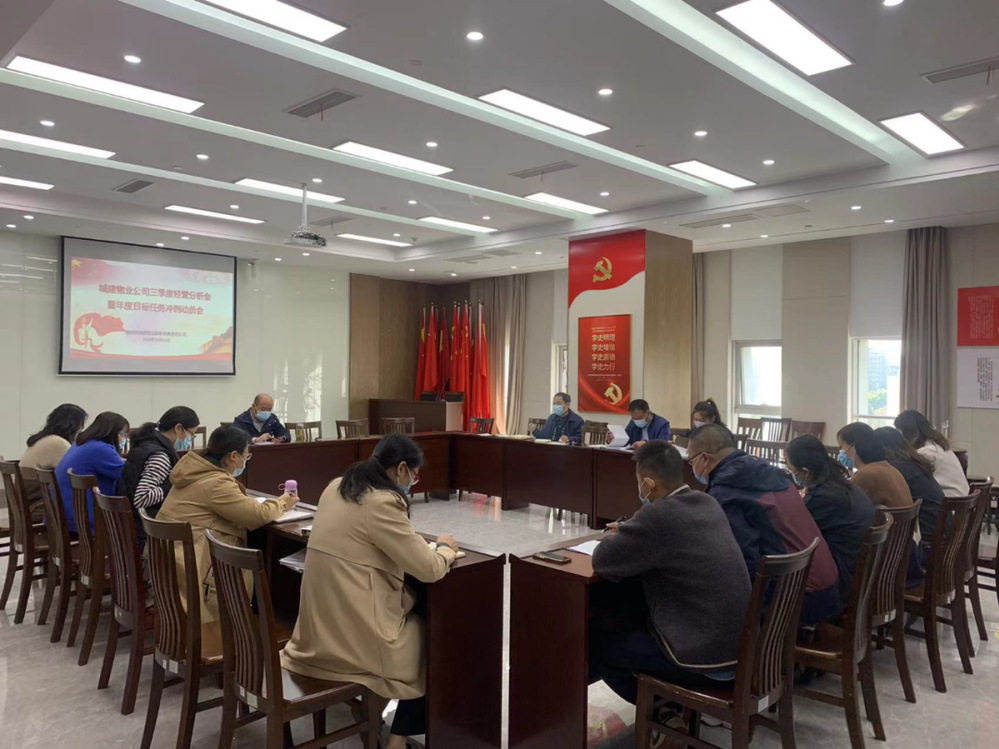 10月12日上午,城建物業(yè)公司召開2022年三季度經(jīng)營分析會。會議回顧總結(jié)了前三季度各服務(wù)項目經(jīng)營情況,客觀分析了當(dāng)前面臨的問題及原因,并對第四季度的重點工作和沖刺全年目標(biāo)任務(wù)進(jìn)行了安排部署。物業(yè)公司分管領(lǐng)導(dǎo)、各項目負(fù)責(zé)人及相關(guān)工作人員參加會議。