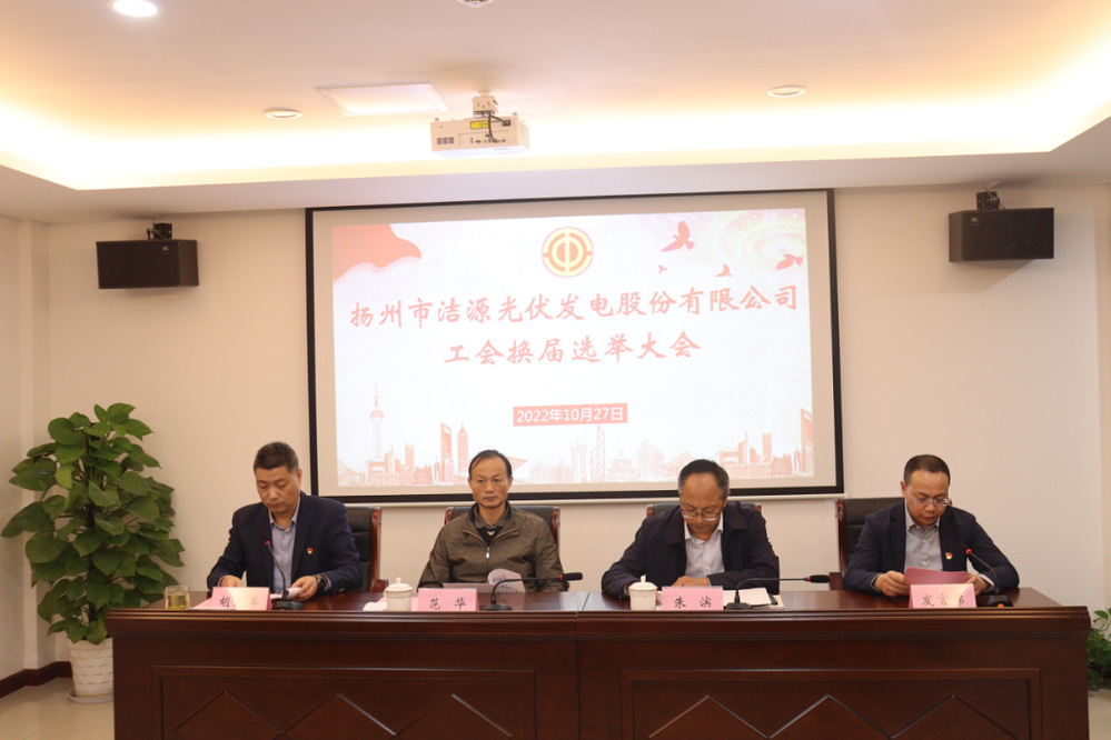 10月27日上午,潔源光伏公司召開了工會換屆選舉大會。市總工會建設工會主任范華、市城控集團工會副主席朱濱到會指導,公司工會全體會員參加會議。