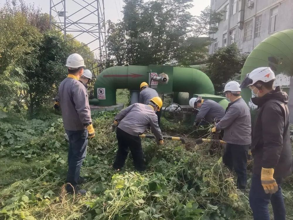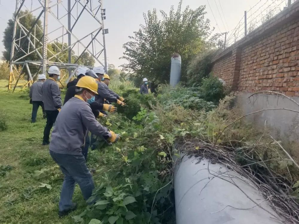 西銀溝蒸汽主管道為西南線末端,也為道路盲區(qū),周邊雜樹雜草已成為影響管網(wǎng)安全運行和環(huán)境整潔的極大隱患。志愿者或徒手或用工具,對管道周圍的雜草、樹枝進行修剪,所有雜物進行全面清除。從中午一直到天黑,在這樣的深秋時節(jié),一個個汗流浹背,熱氣騰騰,用辛苦的勞動換來周邊干凈整潔的環(huán)境,綠油油的管網(wǎng)重新展露身姿,該區(qū)環(huán)境也煥然一新。