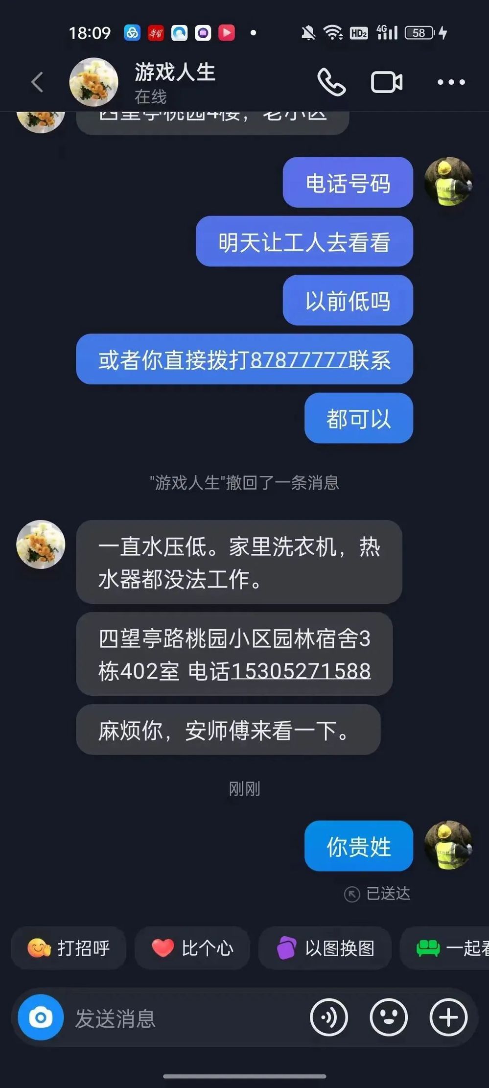 一直水壓低。家里洗衣機(jī)、熱水器都無法工作。麻煩安排師傅來看一下。
