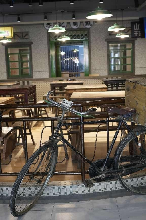 一臺黑白電視、一輛“二八大杠”、一張懷舊海報(bào)……看到這些物品,8090年代的回憶就撲面而來。曾經(jīng)一家人圍坐的老式八仙桌,鑲嵌在水泥墻上的木窗欄,掛滿“唐僧肉”、無花果絲、“牛羊配”的小賣部,這一個(gè)又一個(gè)熟悉的老場景,現(xiàn)在,在位處老城區(qū)核心位置的文昌百匯街區(qū),又重現(xiàn)啦!