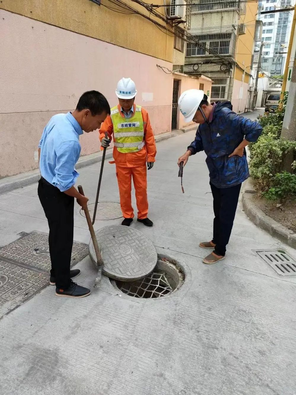 管線巡查期間有發(fā)現(xiàn)新建工地時,各管線運營所第一時間在“智慧排水平臺”進行上報,最后會同上級主管部門、屬地與施工方就污水管道施工、市政管網(wǎng)接入、污水臨排等事宜進行交底,落實全過程監(jiān)管。對在建工地違排、擅自遷改排水管道以及違規(guī)破壞排水設(shè)施等行為進行重點排查,制定專項排查方案,并將有關(guān)情況上報屬地主管部門。同時,巡查人員通過觀察小區(qū)預留井和市政管道沿線污水井及其周邊的雨水篦子晴雨天水量變化,深扒雨污水管道“搭錯橋”。