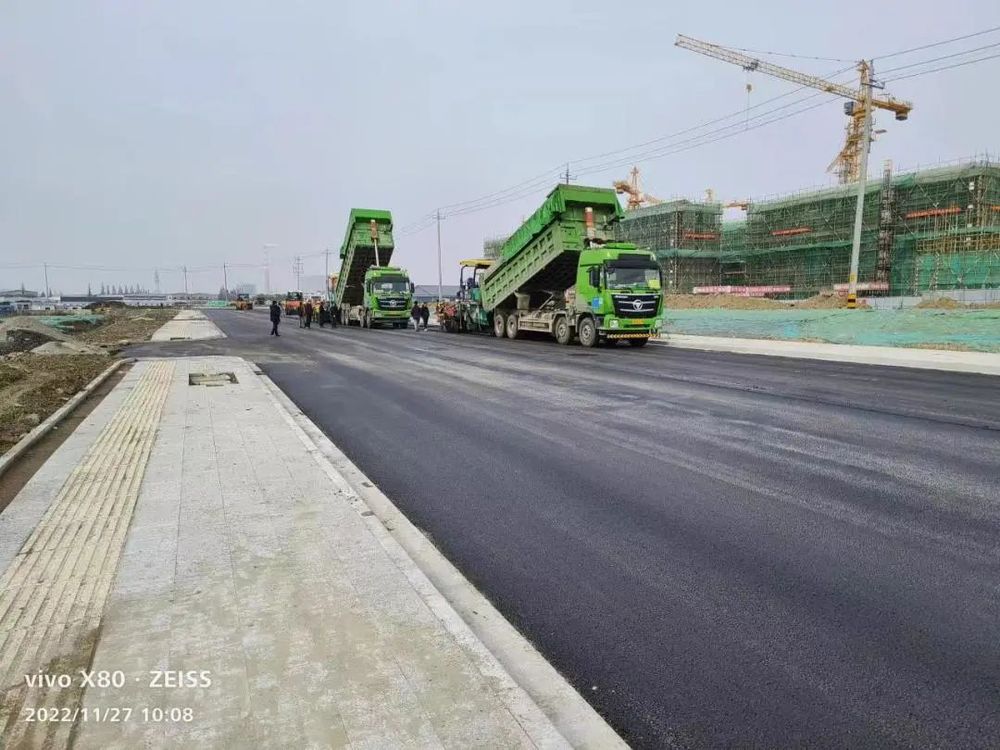 11月26日、27日,利用晴好天氣窗口,經(jīng)科學(xué)組織、合理調(diào)度,灣頭建新路、書安路一期工程瀝青砼攤鋪工作順利完成,瀝青砼的攤鋪為項目順利完工打下了堅實的基礎(chǔ)。