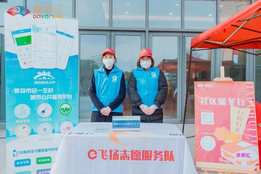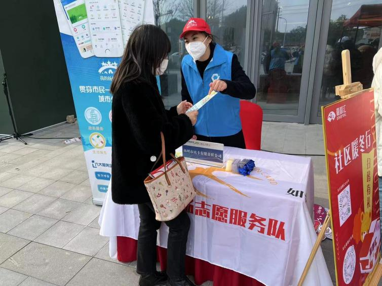 12月11日,為更好地弘揚(yáng)志愿服務(wù)精神,切實(shí)為市民們在這個寒冬送去溫暖,市民卡“e飛揚(yáng)”志愿服務(wù)隊(duì)在嘉都匯外廣場設(shè)置便民流動服務(wù)點(diǎn),為前來參加揚(yáng)州嘉都匯大型招聘會的市民提供“零距離”服務(wù)。