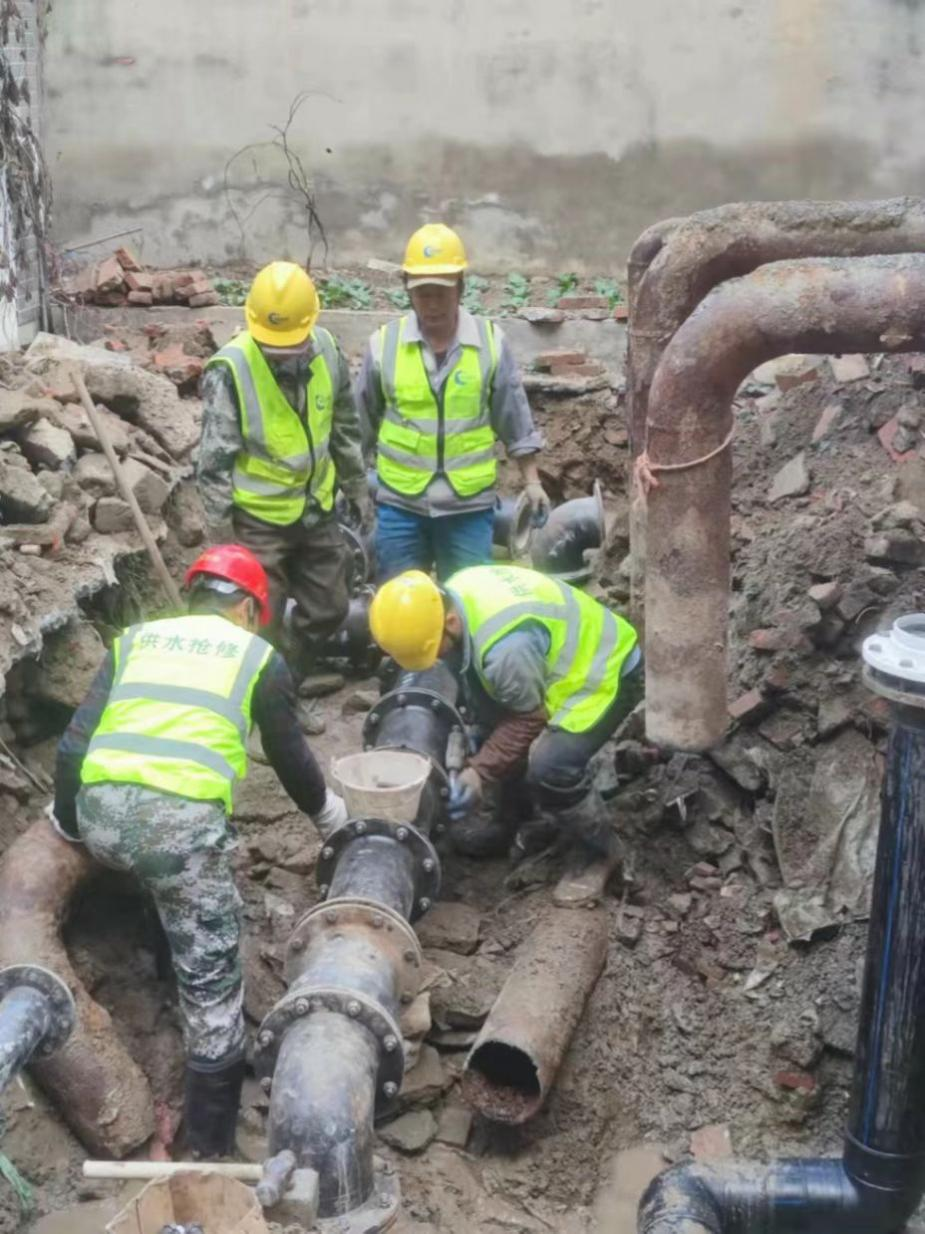 長(zhǎng)江水務(wù)第三黨支部“水網(wǎng)先鋒突擊隊(duì)”在此次搶修任務(wù)中擔(dān)當(dāng)工作骨干,他們平時(shí)每天24小時(shí)值守崗位,哪里有管道搶修,他們就出現(xiàn)在哪里!他們出動(dòng)及時(shí)處理得當(dāng),用了5個(gè)小時(shí)就完成閘門止水、土方開挖、管道更換等工作,為小區(qū)居民恢復(fù)了供水。