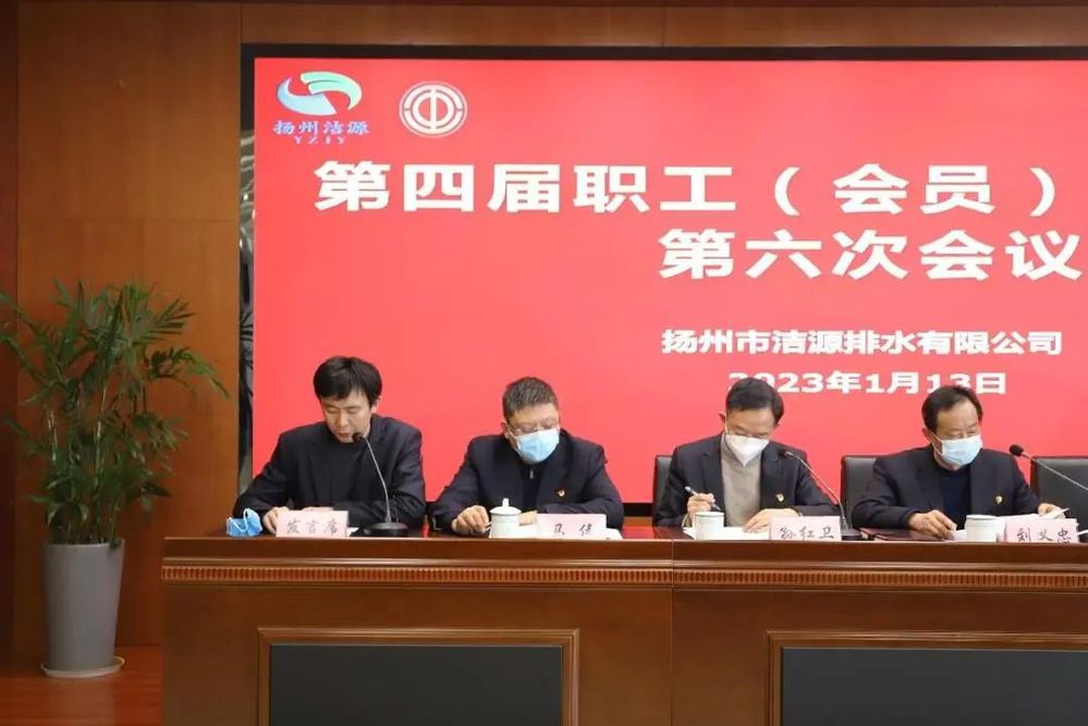 2023年1月13日上午,揚州市潔源排水有限公司在新辦公樓501會議室召開了第四屆職工(會員)代表大會第六次會議,公司領(lǐng)導班子全體成員、職工(會員)代表和列席代表參加了會議。