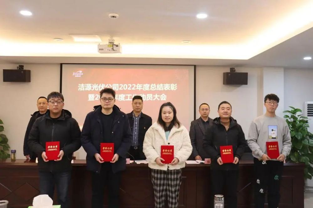 會議傳達了城控集團2022年總結表彰暨2023年工作動員大會精神;公司負責人作了題為《追光逐電 向陽十年 奮力譜寫潔源光伏公司高質量發(fā)展新篇章》的工作報告,全面總結了一年來的工作成績,深入分析了公司發(fā)展存在的不足,對2023年重點工作進行了動員部署,并表彰了2022年度先進個人。