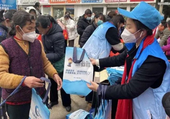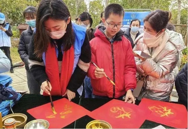 活動(dòng)當(dāng)天,“水質(zhì)安全衛(wèi)士”和市應(yīng)急管理執(zhí)法局黨支部志愿者們?cè)缭绫銇?lái)到寶帶社區(qū)中心廣場(chǎng)準(zhǔn)備好筆墨紙硯,志愿者們揮毫潑墨,現(xiàn)場(chǎng)創(chuàng)作,將一張張充滿美好祝福的“?!弊炙偷饺罕娛种校罕妭兎错憻崃?,紛紛圍觀領(lǐng)取。利用送“?!钡钠鯔C(jī), “水質(zhì)安全衛(wèi)士”志愿服務(wù)隊(duì)還向圍觀群眾發(fā)放冬季用水防寒保溫宣傳單,提供水質(zhì)檢測(cè)服務(wù),提醒大家注意冬季用水設(shè)施情況,做好防寒保暖工作,安全安心過(guò)節(jié)。