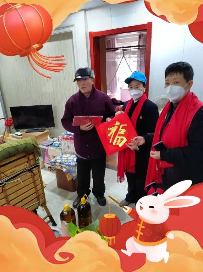 這一邊墨香四溢,那一頭寒冬送暖。志愿者們來(lái)到社區(qū)獨(dú)居高齡老人的家里,為他們提前送上“?!弊趾蛺?ài)心物資,并給予新春佳節(jié)的美好祝福。一袋袋米、一桶桶油,雖然在普通人眼中不算什么,但對(duì)于困難家庭來(lái)說(shuō),這些可是最實(shí)惠的禮物,讓他們?cè)谶@寒冷的季節(jié)里也感受到親人般的溫暖。