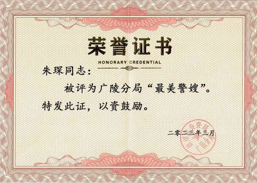 朱琛是市民卡公司的一名普通女職工,但她還有一個(gè)特殊身份——警嫂,她的丈夫劉龐是廣陵分局考核督辦科科長(zhǎng),在劉龐忙碌奔波、服務(wù)群眾,守護(hù)萬(wàn)家平安的同時(shí),作為警嫂的朱琛比一般女性承擔(dān)了更多壓力,在努力完成本職工作的同時(shí),她充分理解丈夫工作的特殊性,給予丈夫大力支持,默默的以柔弱的肩膀承擔(dān)起了照顧家庭、子女的重任,充分展現(xiàn)了當(dāng)代警嫂的優(yōu)良品德與高尚風(fēng)范,讓丈夫能夠無(wú)后顧之憂,全心全意地維護(hù)風(fēng)清氣正的社會(huì)治安環(huán)境,獲得丈夫所在分局干警的一致稱贊。