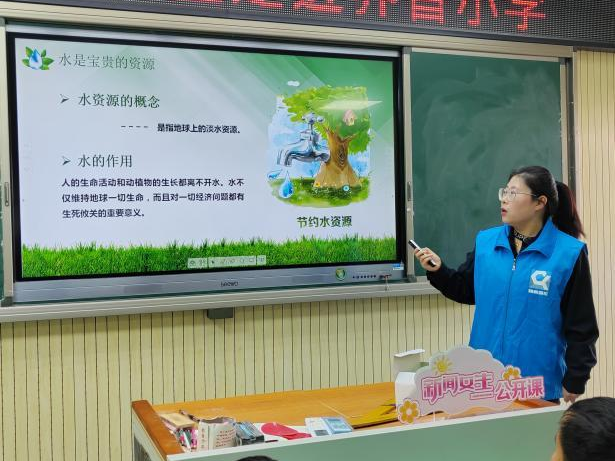 活動(dòng)現(xiàn)場(chǎng),“小李服務(wù)隊(duì)”志愿者以“保護(hù)水資源——節(jié)約用水,人人有責(zé)”為主題,圍繞水資源的概念、水的用途、節(jié)約用水的重要性、節(jié)約用水小妙招、以及科學(xué)的飲水習(xí)慣進(jìn)行了科普宣傳,并在課堂互動(dòng)問(wèn)答環(huán)節(jié)為積極舉手發(fā)言的同學(xué)們分發(fā)學(xué)習(xí)用品作為獎(jiǎng)勵(lì)。