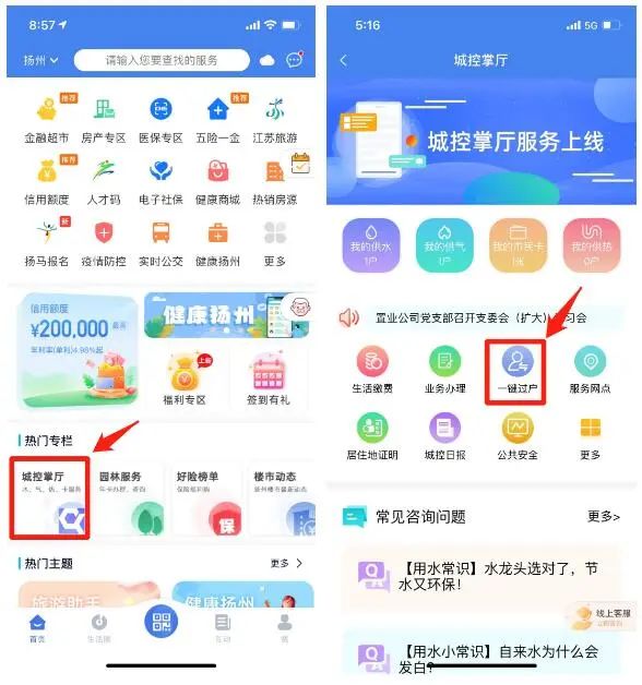 近日,揚州城控集團整合旗下長江水務(wù)、揚州中燃與揚州市民卡公司優(yōu)質(zhì)資源,打通關(guān)鍵性技術(shù)壁壘,開創(chuàng)性打造了線上“水氣一鍵過戶”平臺。