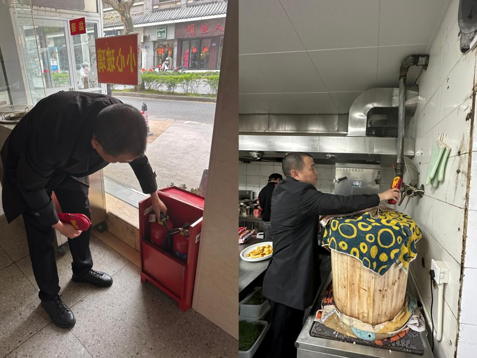 在迅客大食堂,安全員詳細查看了店內(nèi)消防器材、安全疏散通道等,對燃氣管道、閥體進行氣體泄漏檢查,要求餐飲負責人按消防規(guī)定配備應(yīng)急照明燈、滅火器等消防設(shè)備,同時提高安全用氣防范意識,每日定時對店內(nèi)燃氣設(shè)備進行檢查,確保安全無泄漏。