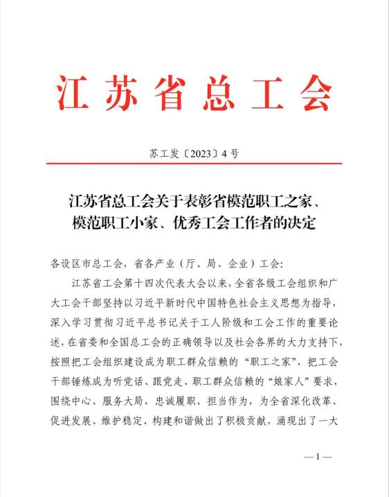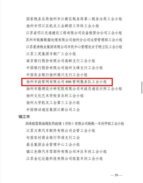 近日,江蘇省總工會(huì)表彰了一批省模范職工之家、模范職工小家、優(yōu)秀工會(huì)工作者。揚(yáng)州市政管網(wǎng)有限公司“890管網(wǎng)服務(wù)隊(duì)”榮獲“江蘇省模范職工小家”稱號(hào)。