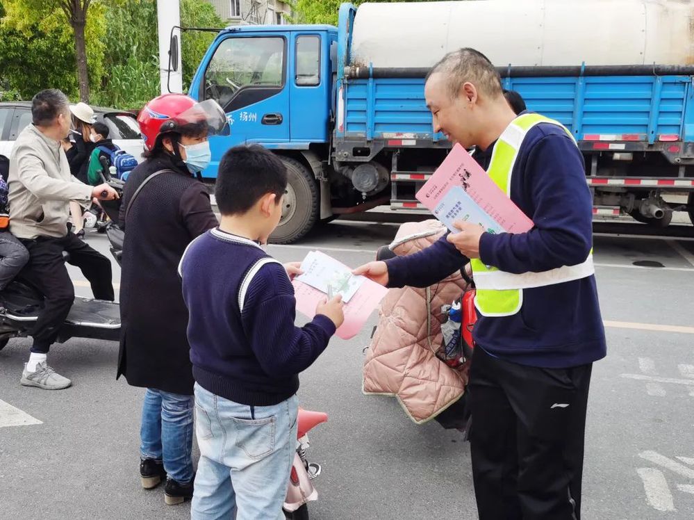 活動中,“藍焰同心”志愿結合學校周邊的道路交通環(huán)境,向散學的學生發(fā)放宣傳資料,做好交通安全知識宣傳,同時引導學生們以“小手牽大手”的互動方式,告知父母及親戚朋友共同遵守道路交通法律法規(guī),守法知禮,安全出行。