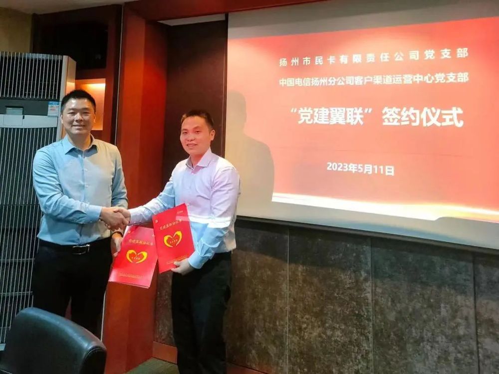隨后,揚(yáng)州市民卡公司黨支部與中國(guó)電信揚(yáng)州分公司客戶渠道運(yùn)營(yíng)中心黨支部展開(kāi)了黨建翼聯(lián)結(jié)對(duì)簽約活動(dòng)。相關(guān)負(fù)責(zé)人圍繞“聯(lián)學(xué)、聯(lián)創(chuàng)、聯(lián)享、聯(lián)動(dòng)”方面的黨建共建合作進(jìn)行了深入細(xì)致的交流,就黨建優(yōu)勢(shì)轉(zhuǎn)化為發(fā)展優(yōu)勢(shì)、資源互補(bǔ)提出了建設(shè)性建議。