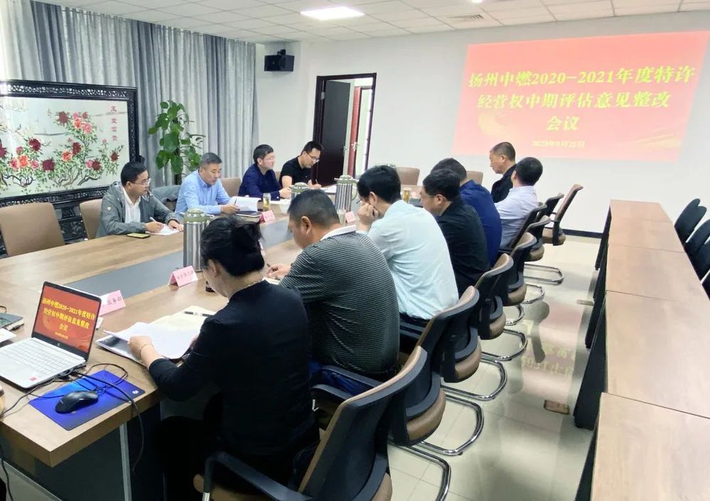 近期市燃管中心組織召開了揚州中燃2020-2021年度特許經營權中期評估整改督查會,公司相關領導及部門負責人參加會議。
