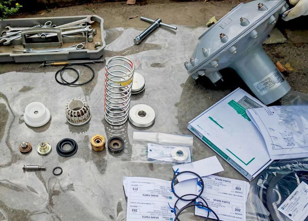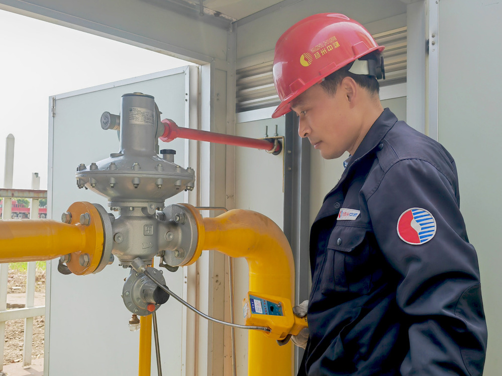 演練模擬調壓班巡查人員發(fā)現(xiàn)運西恒園小區(qū)調壓器泄漏,按照應急預案逐級報告,生產(chǎn)運營部負責人接報修后,立即安排應急搶修人員到達現(xiàn)場,查看泄漏情況,現(xiàn)場制定搶修方案、高峰時段區(qū)域用戶正常供氣應急措施。搶修人員根據(jù)方案流程迅速關閉調壓器進出口閥門,開啟旁通閥門,手動調節(jié)控制用戶燃氣壓力,不影響居民正常用氣。調壓維修人員拆下調壓設備,查找故障點,清理配件,更換故障設備和備件包,重新安裝調試。經(jīng)檢漏儀檢測合格后,關閉旁通供氣,調壓器恢復正常運營,至此完成搶修。