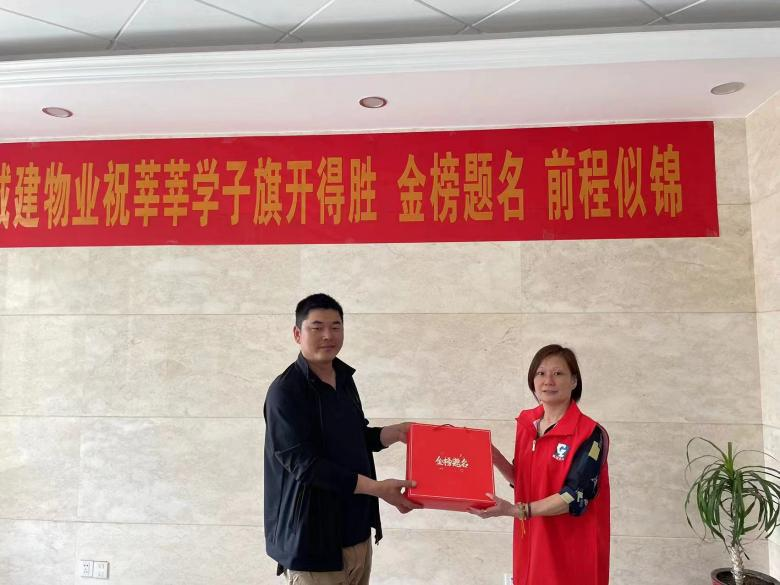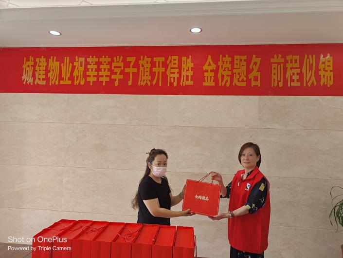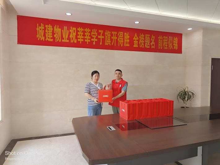 為了向中高考家庭表達(dá)關(guān)心,城建物業(yè)公司早早就統(tǒng)計(jì)了各服務(wù)項(xiàng)目今年參加中高考的家庭數(shù)量,特別定制了“旗開得勝金榜題名”狀元禮盒,并于6月3日上午開展集中慰問活動,為這些家庭送上了中高考前的祝福。