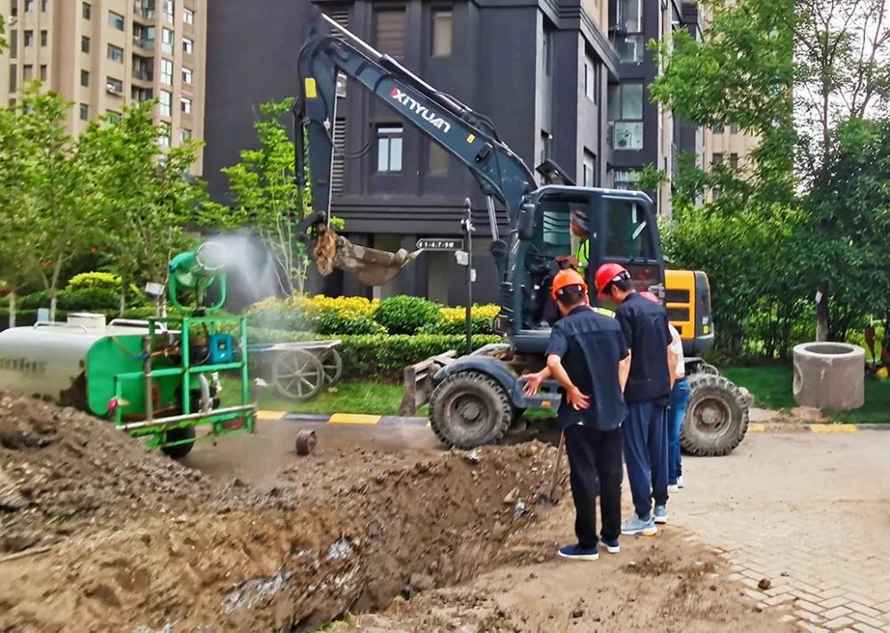 2023年6月3日15時30分,揚州中燃公司24小時客服熱線接到工地監(jiān)護人員報修電話:君悅?cè)A府5幢附近,雨污水施工單位改造施工時將PE110低壓燃?xì)夤艿劳谄?,造成大量天然氣泄漏,請立即通知維修人員趕赴現(xiàn)場搶修。接報后,公司立即按照應(yīng)急處置流程,安排生產(chǎn)運營部值班搶修人員趕赴現(xiàn)場。