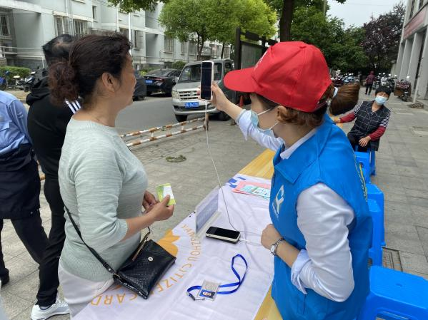 活動(dòng)一開始,志愿者們穿上統(tǒng)一的藍(lán)色志愿馬甲,把準(zhǔn)備好的宣傳展板、橫幅、宣傳折頁、扇子等有序擺放整齊,營造濃厚的活動(dòng)氛圍。志愿服務(wù)走進(jìn)的社區(qū)均為距離營業(yè)網(wǎng)點(diǎn)較遠(yuǎn),人員密集,老年人居多的區(qū)域,活動(dòng)很快吸引了眾多群眾的圍觀。志愿者們將服務(wù)窗口“搬”至居民家門口,為其提供市民卡充值、老年卡年審、更換卡套等服務(wù)。他們還一邊向居民群眾發(fā)放各類宣傳彩頁,一邊用通俗易懂的語言向他們宣傳市民卡的種類與用途,講解“我的揚(yáng)州APP”的功能和便捷性,征詢市民對市民卡的建議與意見,不斷提高廣大居民群眾對市民卡和“我的揚(yáng)州APP”的知曉率,參與率和滿意度。