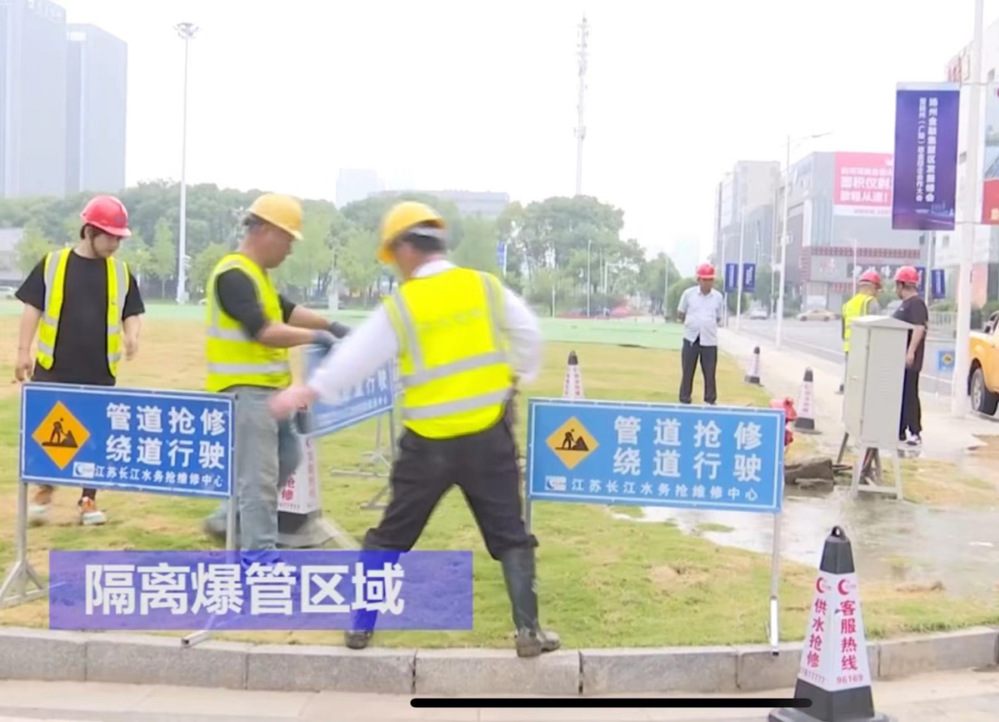 “供水搶修隊(duì),受強(qiáng)降雨影響,廣陵大橋東一處供水管道破裂,你們要立即搶修!”長(zhǎng)江水務(wù)搶維修中心接到指令后,派水網(wǎng)先鋒突擊隊(duì)迅速趕到指定地點(diǎn)進(jìn)行搶修。