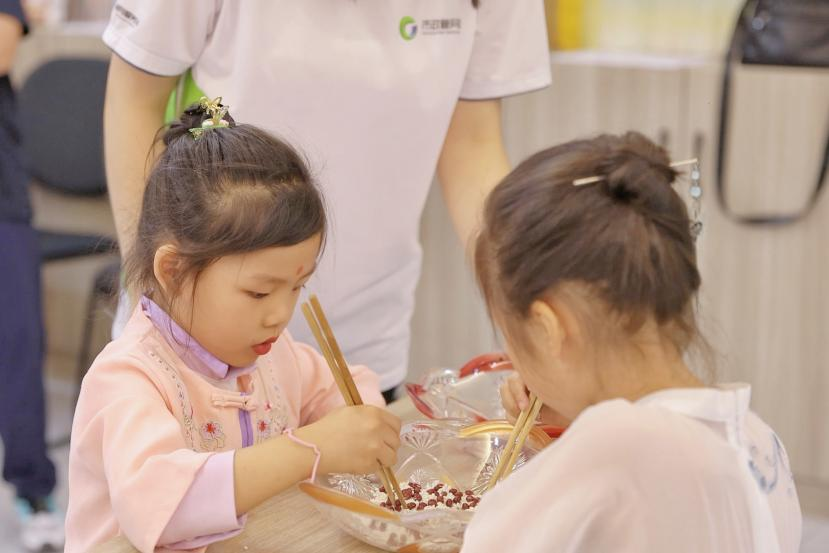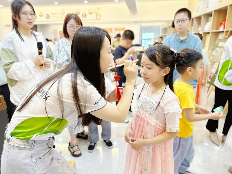 點朱砂俗稱“開天眼”,寓意祝福孩子眼明心亮,一點就通?;顒蝇F(xiàn)場,志愿者執(zhí)筆為孩子們在額頭正中間點朱砂,啟智門——朱砂啟智,為孩子們開啟智慧之門,希望孩子們將來都能成為祖國的棟梁之才。