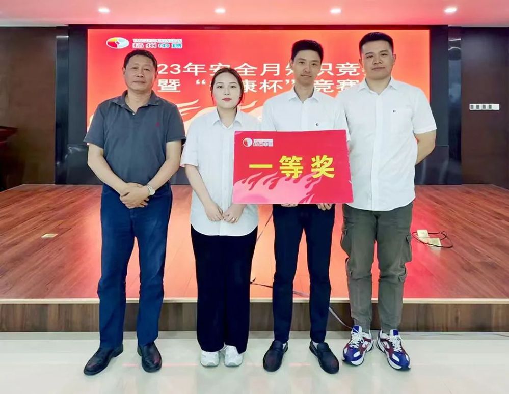 競(jìng)賽形式分為必答題、搶答題、風(fēng)險(xiǎn)題和互動(dòng)題等。競(jìng)賽內(nèi)容包括生產(chǎn)運(yùn)行、消防安全、職業(yè)健康等安全生產(chǎn)知識(shí)。經(jīng)過(guò)緊張激烈角逐,第三黨支部代表隊(duì)獲得一等獎(jiǎng)、第一黨支部代表隊(duì)獲得二等獎(jiǎng)、第五黨支部代表隊(duì)獲得三等獎(jiǎng)。