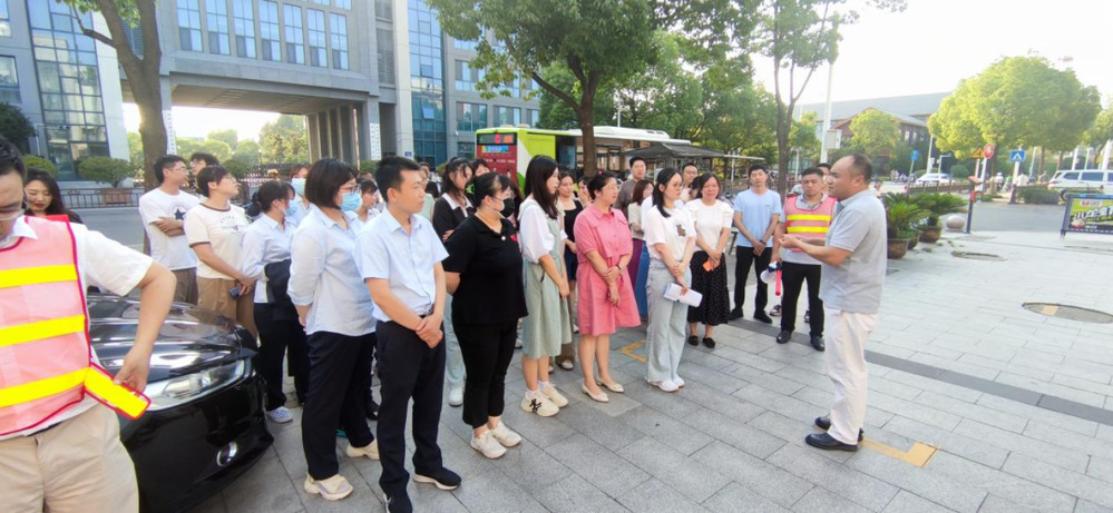 疏散人員在辦公樓前集合,經(jīng)各部門清點確定人員全部撤離后,演習結(jié)束。