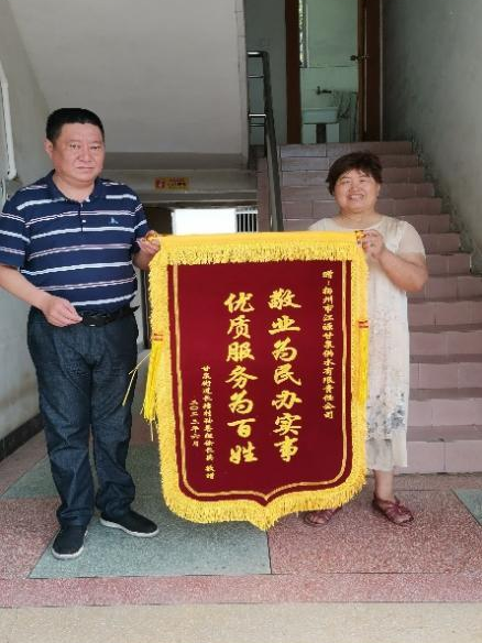 “真的非常感謝你們,高效服務(wù)、為民解憂,解決了我們家的用水問題!”近日,家住甘泉鎮(zhèn)長(zhǎng)塘村孫巷組的徐長(zhǎng)英將一面印有“真情服務(wù)暖人心、吃苦耐勞品德高”的錦旗送到了長(zhǎng)江水務(wù)江源公司甘泉分公司,感謝工作人員為她一家子解決了用水難題。