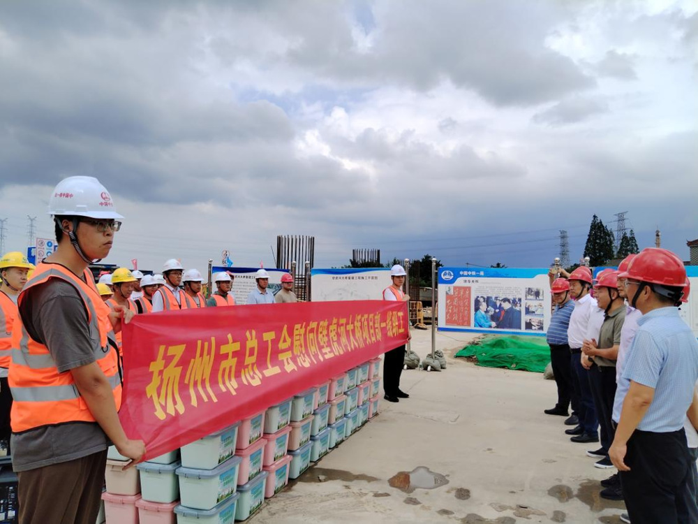 8月1日下午,揚(yáng)州市總工會副主席楊浩帶隊(duì)到壁虎河大橋項(xiàng)目部,走訪慰問高溫下堅(jiān)守一線的施工人員。城控集團(tuán)副總經(jīng)理季紅軍參加了活動(dòng)。
