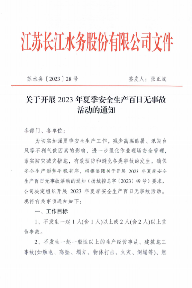 安全發(fā)展大如天,安全責(zé)任重如山。為進(jìn)一步織密織牢“安全防線”,根據(jù)城控集團(tuán)統(tǒng)一部署,長(zhǎng)江水務(wù)公司從嚴(yán)從實(shí)抓好夏季安全生產(chǎn)工作,制定下發(fā)“夏季安全生產(chǎn)百日無事故活動(dòng)”方案,多措并舉筑牢安全供水防線,扎實(shí)推進(jìn)活動(dòng)走深走實(shí)。