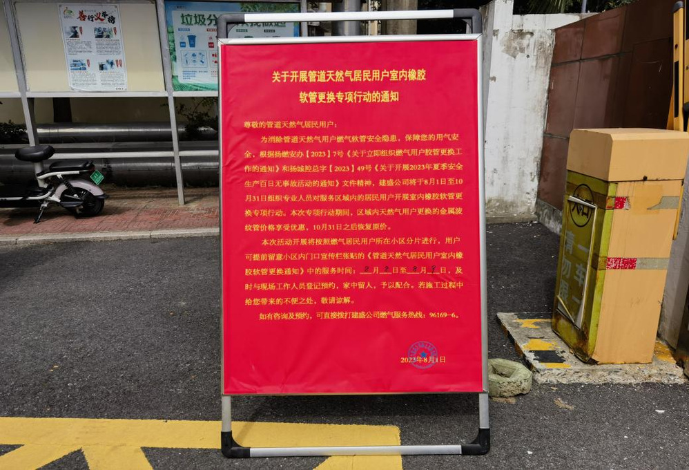 詳細(xì)制定計(jì)劃,推進(jìn)專項(xiàng)行動(dòng)。根據(jù)摸排結(jié)果,第一時(shí)間研究制定了橡膠軟管更換專項(xiàng)行動(dòng)計(jì)劃。一方面,對(duì)即將進(jìn)行更換的小區(qū),提前張貼通知,告知居民更換時(shí)間,提醒居民做好登記,有效提高入戶率、更換率。同時(shí),充分利用業(yè)主群、微信公眾號(hào)、公司網(wǎng)站等,大力宣傳橡膠軟管更換的實(shí)際意義。另一方面,為提高居民更換積極性,公司在專項(xiàng)行動(dòng)期間推出金屬波紋管更換限時(shí)優(yōu)惠活動(dòng),讓大家切實(shí)感受到政策“溫度”。
