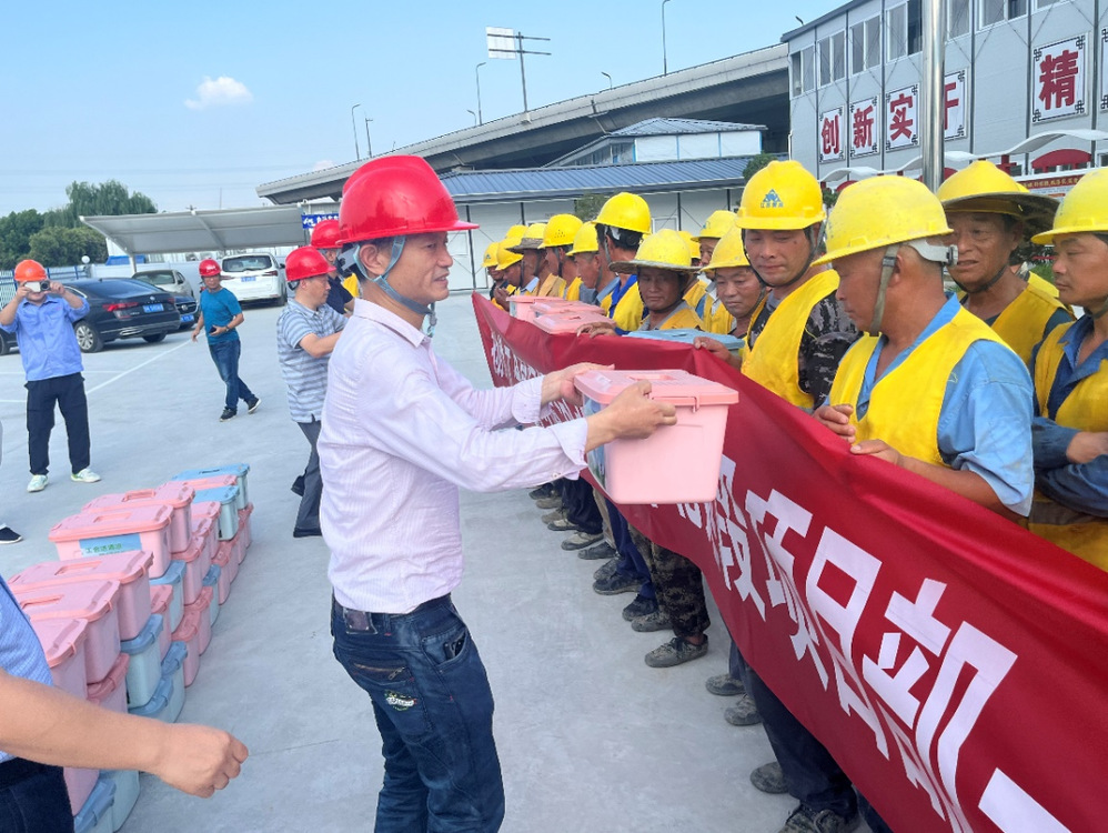 公司領(lǐng)導(dǎo)實(shí)地察看了一線人員工作環(huán)境,詳細(xì)詢問了防暑降溫工作開展情況,對(duì)廣大員工頂烈日、戰(zhàn)高溫、保進(jìn)度的工作精神給予高度肯定,并為員工送去防暑降溫用品,叮囑大家要科學(xué)合理安排工作和生活,注意自身健康防護(hù)。