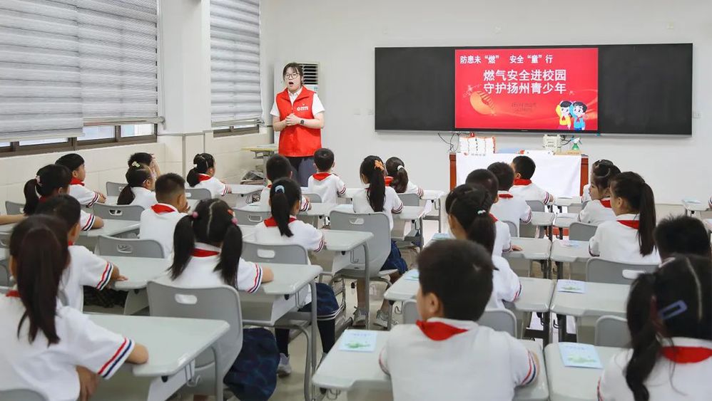 “如果家里天然氣泄漏該怎么辦?”“你們知道橡膠軟管的使用期限嗎?”為進一步提高小學生們安全意識,增強自護本領和避險自救能力,9月12日上午,揚州中燃公司黨委與揚州汶河小學黨總支共同啟動“燃氣安全進校園 守護揚州青少年”安全宣講活動,為同學們開學送上燃氣安全宣教“第一課”,借助同學們的“小手”把燃氣安全知識帶回家,以“小小宣傳員”的身份帶動家庭增強安全用氣意識。