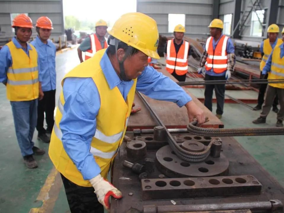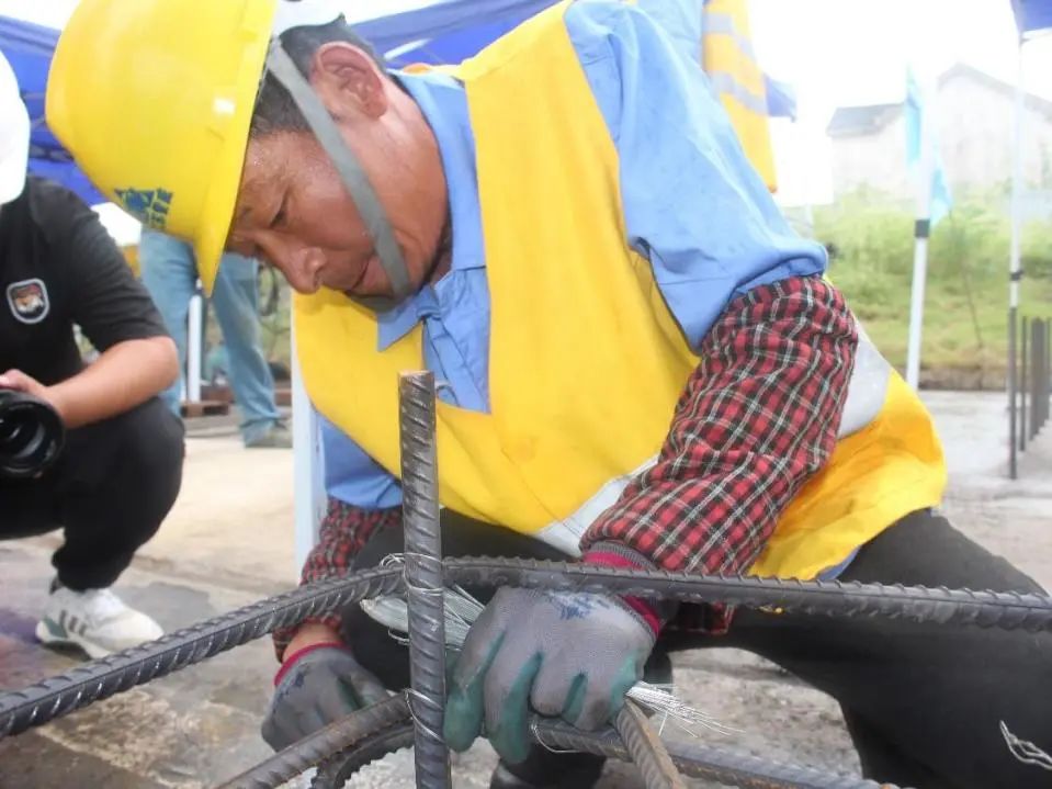 鋼筋工、焊工技能競賽活動中,選手們各個精神飽滿,紛紛拿出看家本領(lǐng),全身心投入其中。焊工技能比賽現(xiàn)場焊花飛濺、弧光四溢,電光火石之間呈現(xiàn)出緊張激烈而又規(guī)范有序的氛圍;另一邊的鋼筋工技能競賽選手們也不甘示弱,搶速度、追精度、比力度,細(xì)細(xì)鐵絲牢牢綁扎住的不只有鋼筋,更有他們彼此之間的默契。經(jīng)過2個小時的激烈比賽后,評委組對參賽選手的作品進(jìn)行了公平公正的評選,并為獲獎選手頒發(fā)了獎狀。