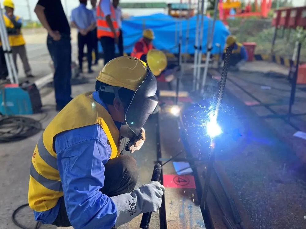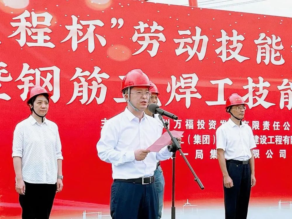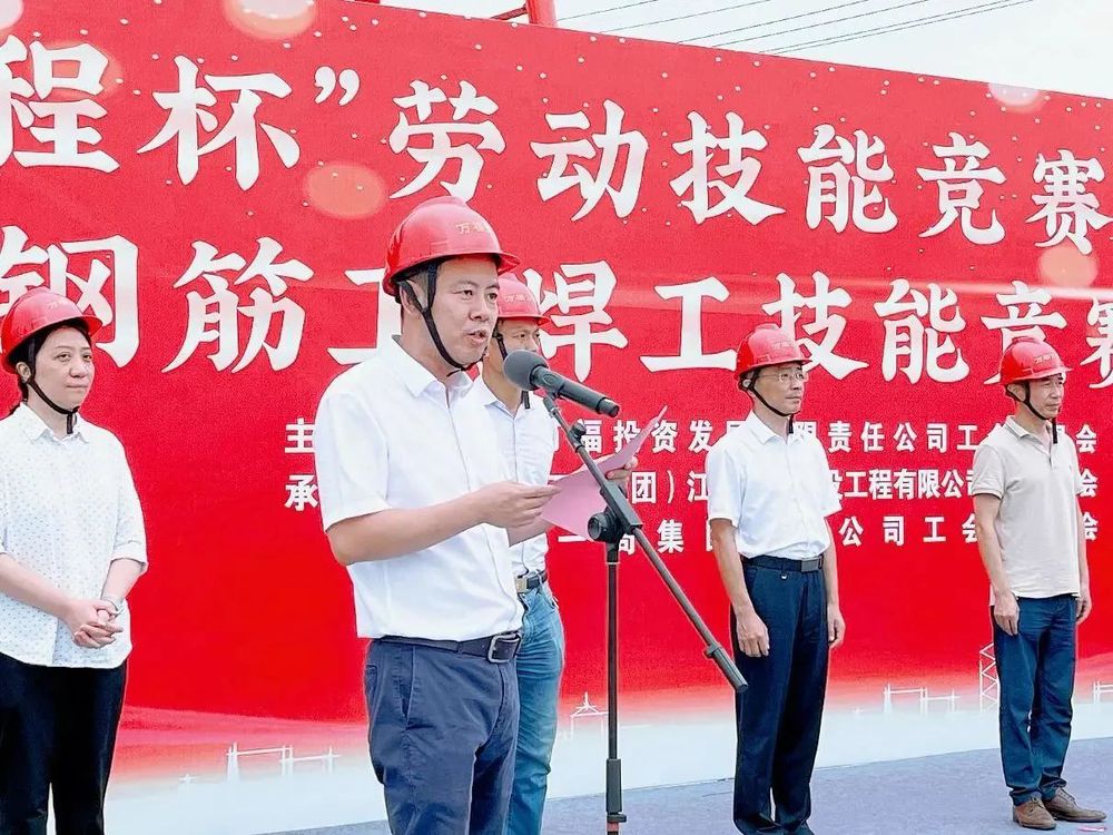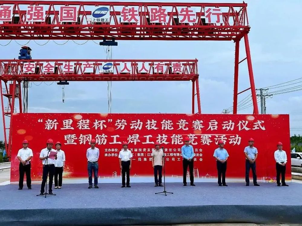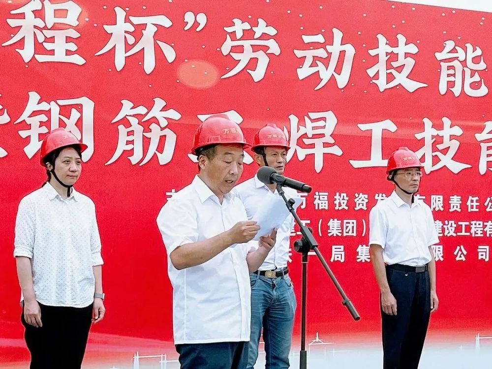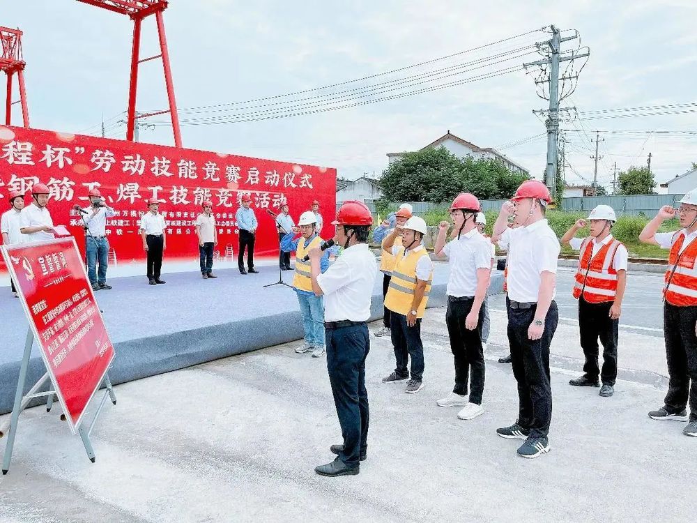 為充分調(diào)動市級重點(diǎn)工程壁虎河大橋及運(yùn)河路北延項(xiàng)目參建單位及廣大員工工作積極性,不斷激發(fā)建設(shè)者勞動熱情,保證項(xiàng)目在安全的前提下快速推進(jìn),2023年9月15日,由萬福公司主辦的“新里程杯”勞動技能競賽啟動儀式暨鋼筋工、焊工技能競賽活動在運(yùn)河路北延工程施工現(xiàn)場舉行。揚(yáng)州市總工會副主席伍瑞慶,揚(yáng)州市住建局黨委委員、副局長肖波,揚(yáng)州市城控集團(tuán)黨委副書記徐飛,黨委委員、副總經(jīng)理季紅軍,揚(yáng)州市總工會建設(shè)產(chǎn)業(yè)工會主任范華,城控集團(tuán)直屬聯(lián)合基層工會主席徐紫月,萬福公司領(lǐng)導(dǎo)班子成員,各參建單位相關(guān)負(fù)責(zé)人、工會主席、項(xiàng)目管理人員代表及工人代表參加了活動。