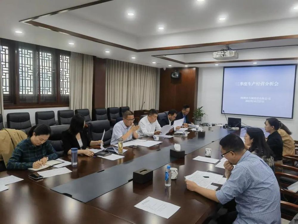 10月27日下午,揚州市名城建設(shè)有限公司召開三季度生產(chǎn)經(jīng)營分析會,總結(jié)今年前三季度工作成果,檢視經(jīng)營管理中存在的問題,對第四季度重點工作進行了安排和部署。會議由城控集團黨委委員、名城公司黨總支書記、總經(jīng)理戴興春主持,名城公司領(lǐng)導(dǎo)班子、中層干部參加會議。