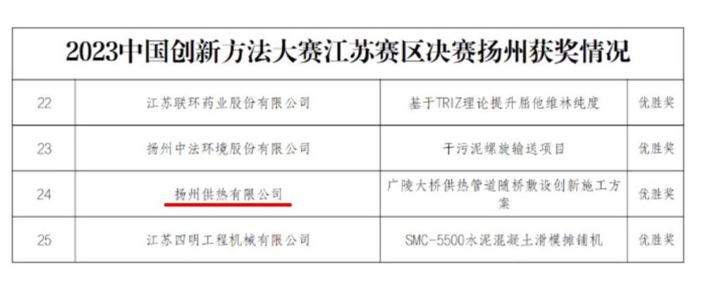 近日,供熱公司勞模創(chuàng)新團隊申報的《廣陵大橋供熱管道隨橋敷設(shè)創(chuàng)新施工方案》通過層層選拔入圍了由省科協(xié)、省工商聯(lián)、省國資委主辦的2023年中國創(chuàng)新方法大賽江蘇賽區(qū)總決賽,并在與全省13個設(shè)區(qū)市152個創(chuàng)新項目的激烈角逐中獲得優(yōu)勝獎。