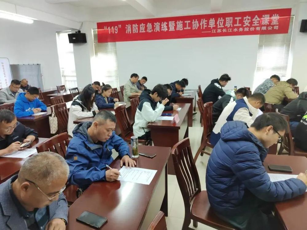 為強(qiáng)化消防安全主體責(zé)任,宣傳消防應(yīng)急知識,增強(qiáng)從業(yè)人員消防安全意識,根據(jù)“11.9”消防宣傳月活動安排,11月7日上午,長江水務(wù)公司聯(lián)合廣陵消防大隊(duì)在江源供水公司開展了消防應(yīng)急演練暨施工協(xié)作單位職工消防安全課堂活動。公司各相關(guān)部門(單位)負(fù)責(zé)人、安全員、施工協(xié)作單位負(fù)責(zé)人、職工代表參加活動。