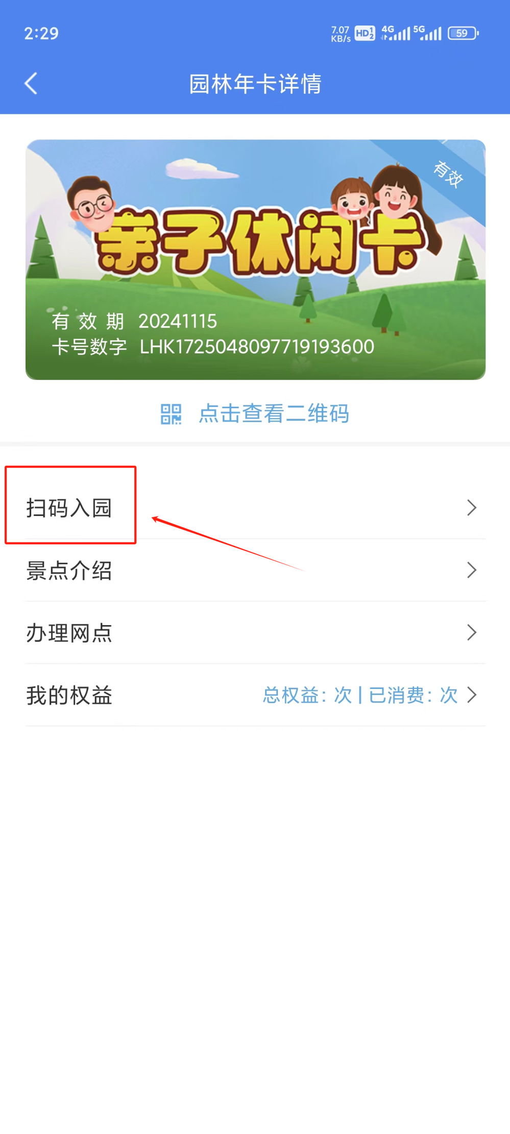選擇所需核銷的卡種,點(diǎn)擊“掃碼入園”。