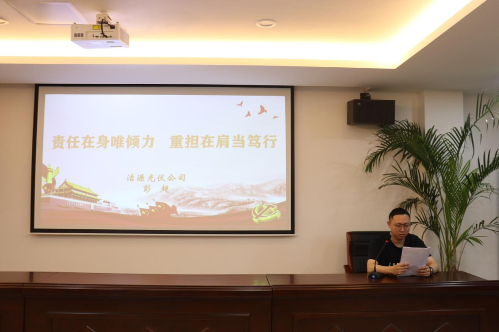 為深入學(xué)習(xí)貫徹習(xí)近平新時(shí)代中國(guó)特色社會(huì)主義思想和黨的二十大精神,引導(dǎo)干部職工以講促學(xué)、以學(xué)促干,5月30日下午,潔源光伏公司黨支部組織開展“我是黨課主講人”學(xué)習(xí)宣講活動(dòng),全體黨員參加活動(dòng)。