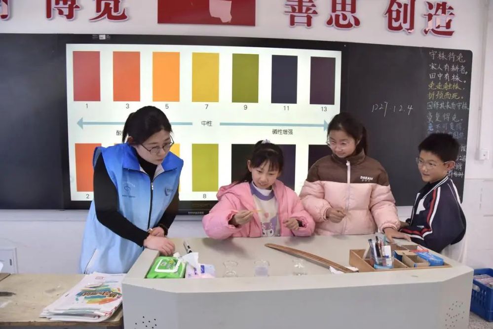 活動(dòng)現(xiàn)場(chǎng),志愿者通過“理論+實(shí)踐”雙線并行的方式,向?qū)W生們普及水資源知識(shí)。理論環(huán)節(jié)中,志愿者以通俗易懂的語(yǔ)言講解了水資源的稀缺性、日常節(jié)水技巧以及長(zhǎng)江流域水生態(tài)保護(hù)的重要性。實(shí)踐環(huán)節(jié)則設(shè)置“水的酸堿度”小實(shí)驗(yàn),學(xué)生們?cè)谥笇?dǎo)下動(dòng)手操作簡(jiǎn)易酸堿度檢測(cè)小實(shí)驗(yàn),觀察不同酸堿度下試紙的變化,讓同學(xué)們深刻理解健康飲水的重要性。