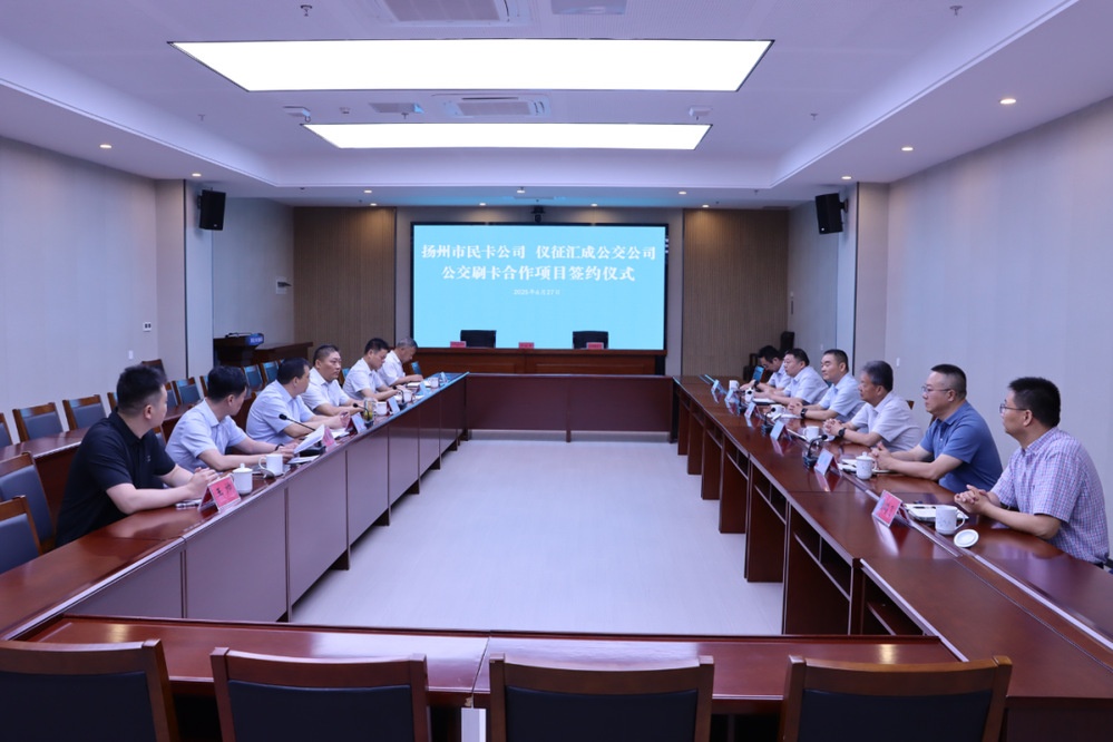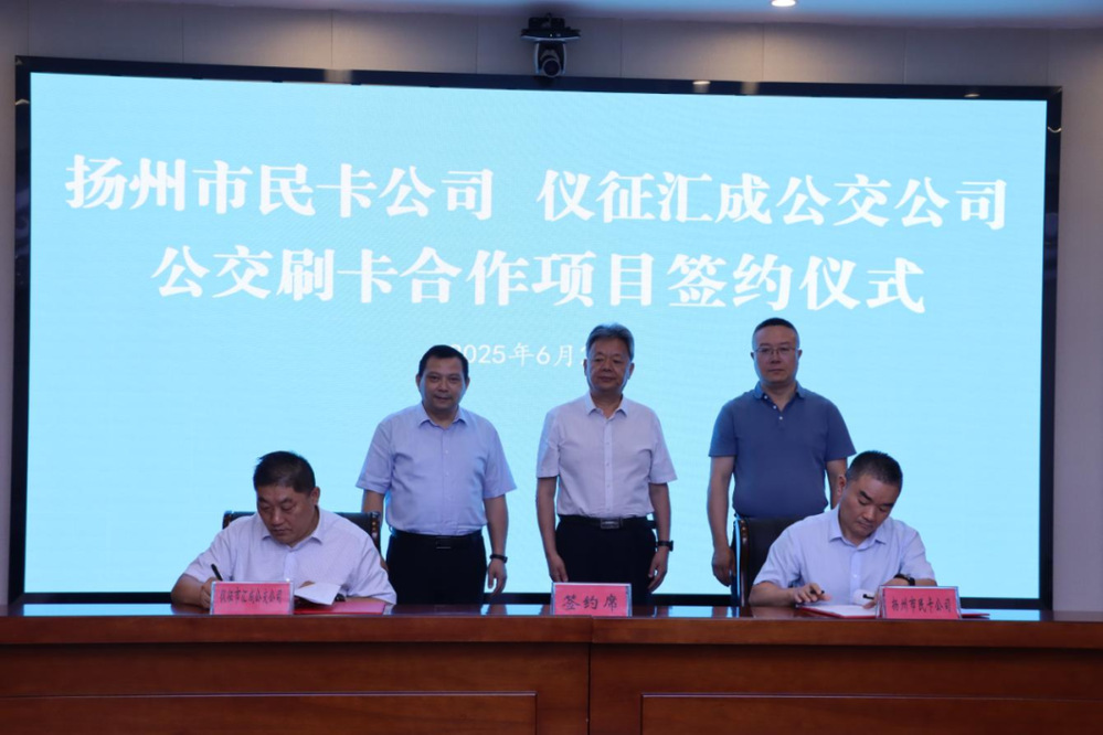 在全體與會人員見證下,雙方共同簽署了揚州、儀征公交刷卡合作協(xié)議。