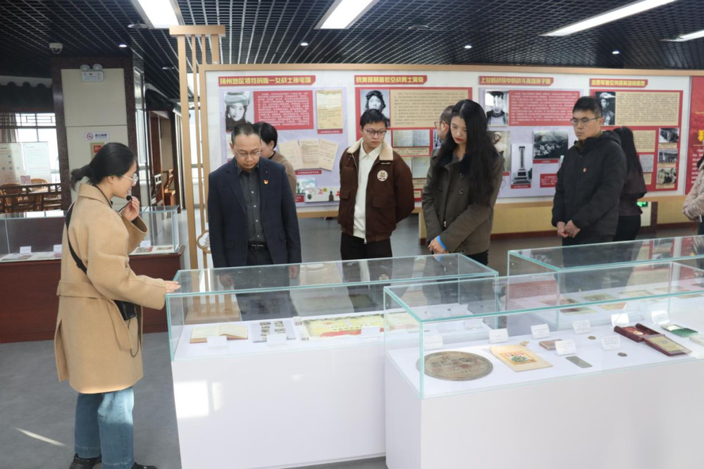 走進(jìn)主題展廳,“組織動(dòng)員”“眾志成城”“英勇作戰(zhàn)”“英雄贊歌”四個(gè)篇章依次鋪展,百余份歷史照片、文獻(xiàn)資料與珍貴實(shí)物,生動(dòng)再現(xiàn)了75年前志愿軍保家衛(wèi)國(guó)的壯闊歷程。黨員干部們駐足凝視、認(rèn)真聆聽(tīng),揚(yáng)州籍烈士的戰(zhàn)功名錄里,是故土兒女的熱血赤誠(chéng),志愿軍特級(jí)英雄楊根思“抱起炸藥包與敵同歸于盡”的壯舉,盡顯以身許國(guó)的決絕;空戰(zhàn)勇士吳奇犧牲前的最后一封家書(shū),藏著對(duì)家國(guó)的牽掛與不舍;上甘嶺戰(zhàn)役中孫子明舍生忘死的沖鋒,刻著無(wú)畏向前的勇毅。泛黃的史料與鮮活的事跡,既生動(dòng)詮釋了“祖國(guó)和人民利益高于一切”的精神內(nèi)核,也讓大家深刻領(lǐng)會(huì)了志愿軍的愛(ài)國(guó)主義、革命英雄主義與國(guó)際主義精神。