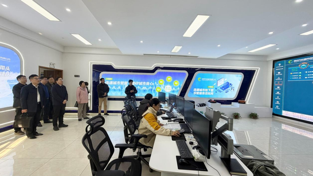 在管網(wǎng)公司運(yùn)行調(diào)度中心,宿遷水務(wù)集團(tuán)一行詳細(xì)了解智慧排水系統(tǒng)的建設(shè)和運(yùn)行管理情況,現(xiàn)場(chǎng)調(diào)研SCADA系統(tǒng)、GIS系統(tǒng)及城排通系統(tǒng)各業(yè)務(wù)模塊的功能和應(yīng)用場(chǎng)景。