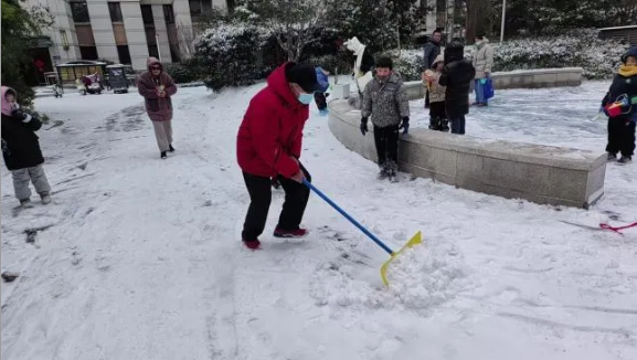 在京杭融園,不少居民們帶著工具自發(fā)加入掃雪隊伍。放假在家的孩子們在家長的陪同下,一起清理兒童樂園周邊的積雪。物業(yè)管家與業(yè)主們合力清掃小區(qū)干道,防止結冰滑倒,共同維護小區(qū)的整潔與安全。
