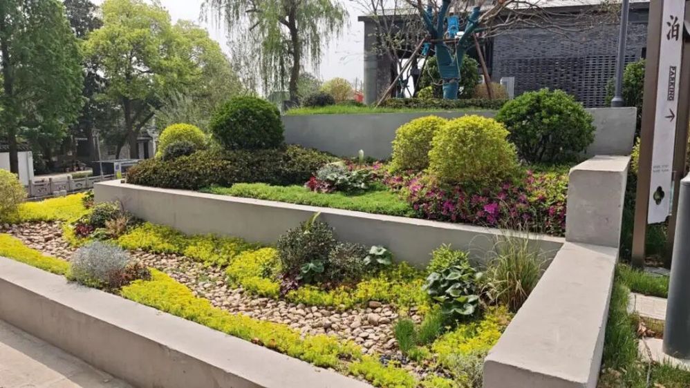 在項目設計中,充分考慮海綿技術與揚州古城特色、 傳統(tǒng)園林景觀的有機結合,在保護歷史肌理的同時,形成“植物選型-空間敘事-功能協(xié)同-文化表達”的全鏈條設計。主要是:結合中式庭院景觀水池進行雨水收集、儲留,降低雨水徑流,合理利用雨水;結合古城區(qū)傳統(tǒng)條石鋪裝,通過條石縫隙、碎石墊層形成透水路徑,降低地表徑流,補充地下水,緩解城市內澇;結合場地高差設置階梯花池,最大限度收集周邊街巷雨水,實現(xiàn)雨水徑流消減和面源污染降低;沿河設置微凹綠地,過濾污染物,減少土壤侵蝕,保護水體生態(tài)。這一精細化設計不僅顯著提升了城市排水效率,有效緩解了內澇風險,更實現(xiàn)了雨水資源的自然積存、滲透與凈化,為揚州古城打造出可持續(xù)的水生態(tài)系統(tǒng)。