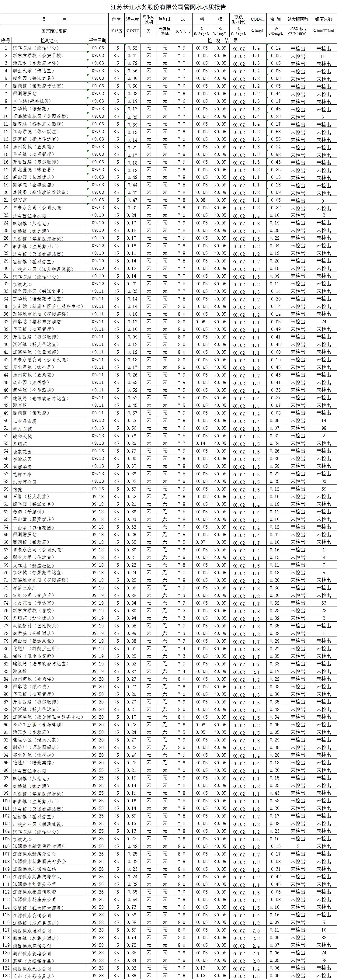 自來水水質(zhì)報(bào)告(2018年9月份)